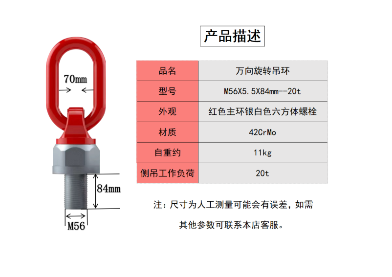 1.;旋转吊环采用锻造合金钢径高温热处理,螺栓与旋转主环组和设计,确保薄弱环节品质