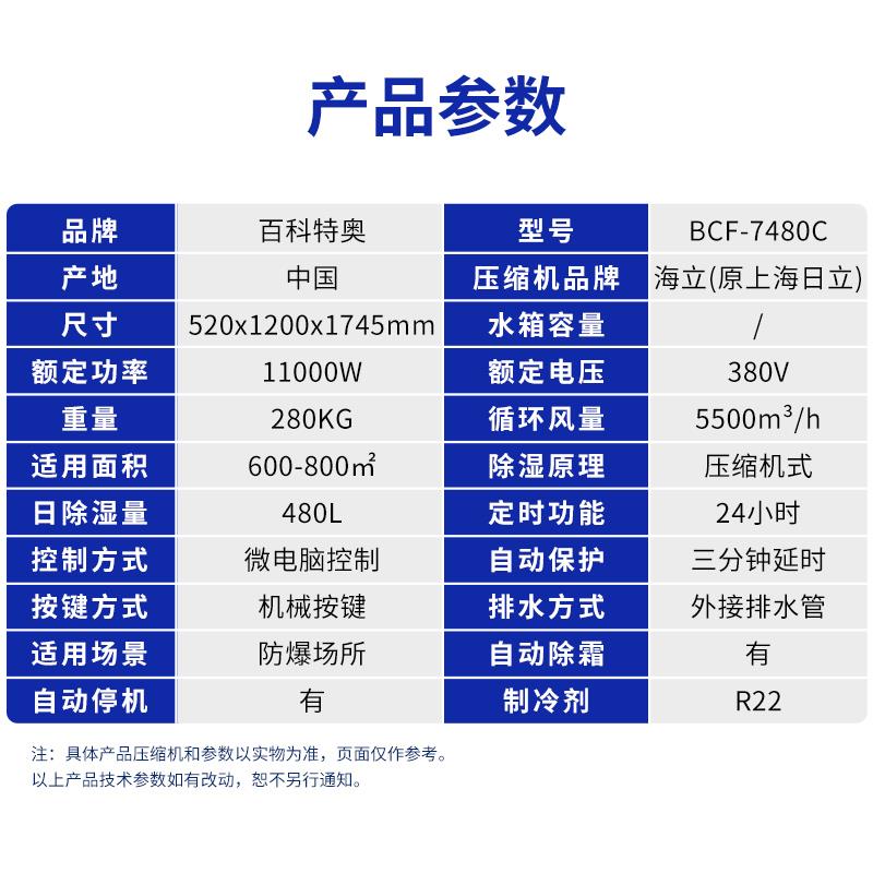 BCF-7480C 除湿量480kG/天 适用面积600~800平方米(房高2.6-3m)