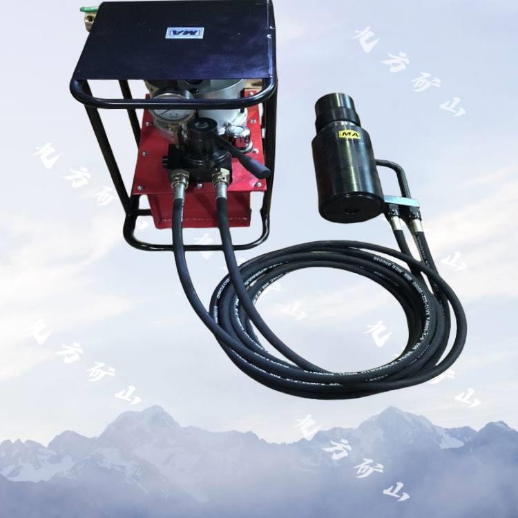 MQ22-400/60矿用锚索张拉机具用于煤矿井下锚索安装,由张拉千斤顶和气动液压泵组成。可根据要求调整输出压力驱动千斤顶对锚索施加要求的预紧力。该系统具有结构简单、重量轻、移动方便、密封好、事 ;故率少、使用方便等特点。