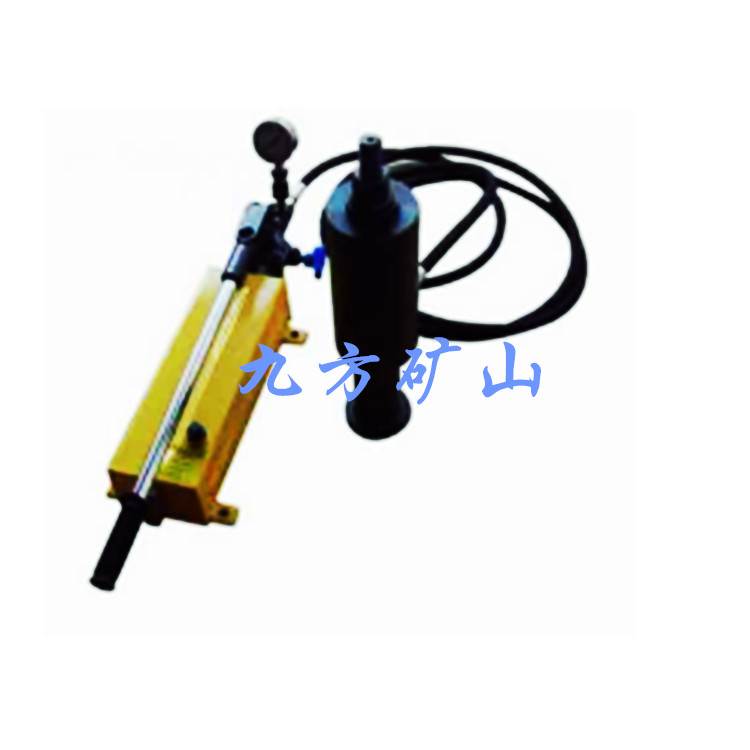 锚杆拉力计配备手动油泵,手动油泵:主要由泵体、压力表、卸荷手柄、储油器、脚踏支架、加油孔、压杆等组成。泵体内设有进、排油阀、卸荷阀等。
