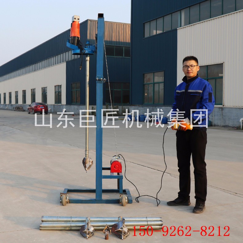 SJD-2B龙门架式小型民用电动打井机广泛应用于家庭/工厂生活用水打井、农田灌溉水井、安装水空调、工地打桩等。