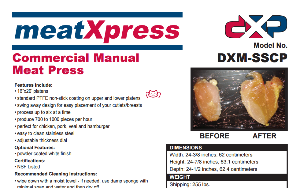 美国DOUGHXPRESS DXM-SSCP 手动重型压肉饼机