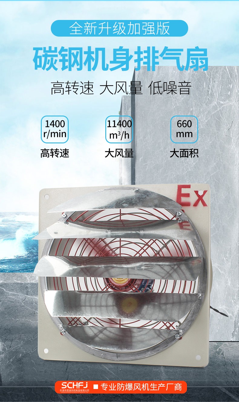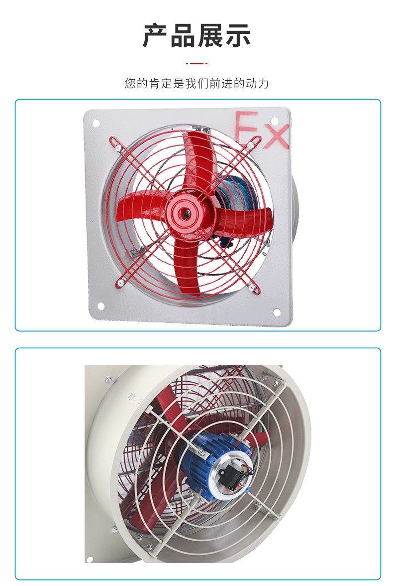 BFAG防爆排风扇,由电动机带动风叶旋转驱动气流,使室内外空气交换的一类空气调节电器。又称通风扇。排风的目的就是要除去室内的污浊空气,调节温度、湿度和感觉效果。