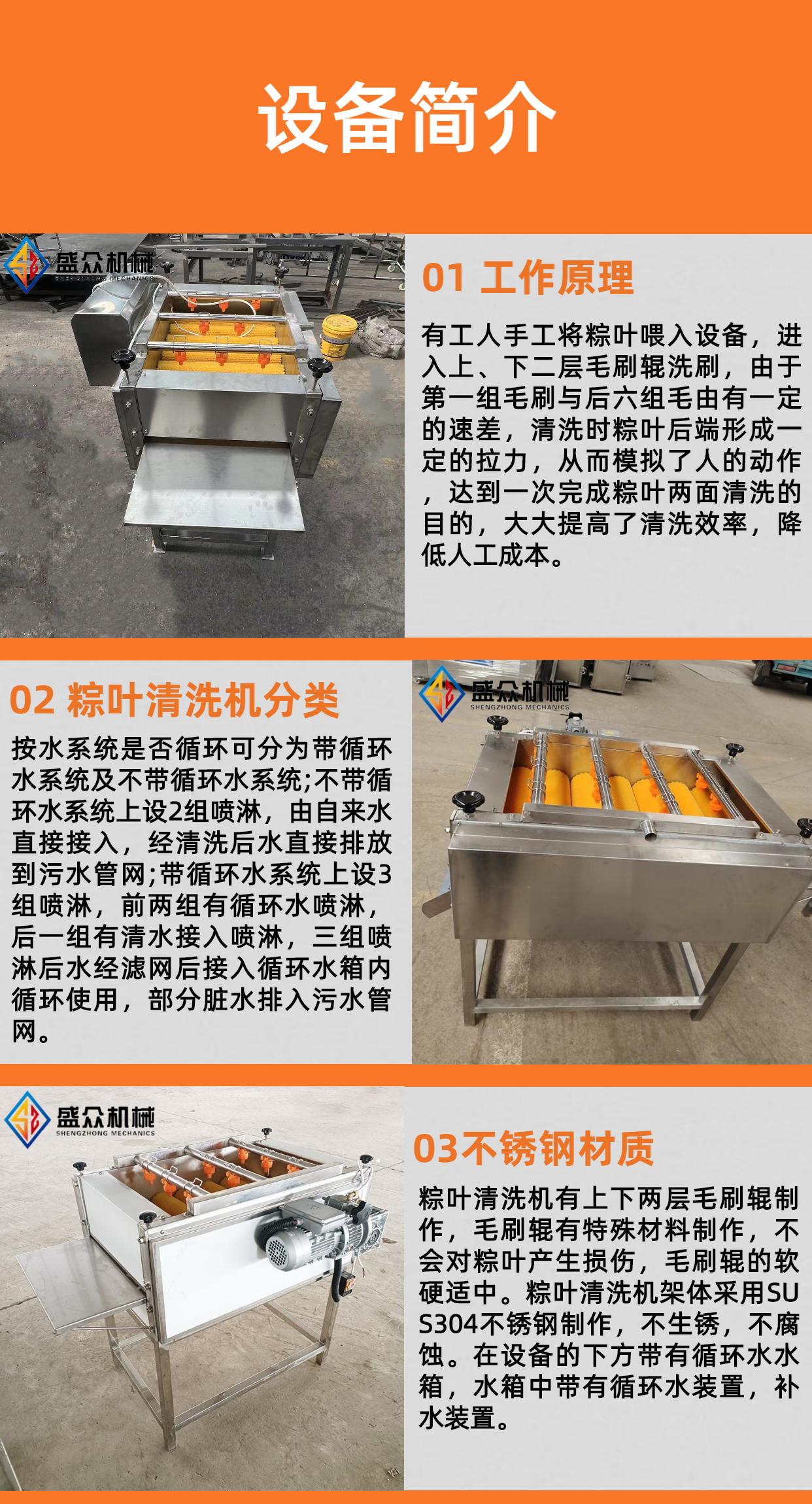 不知不觉又快到了一年一度的端午节了,我们国家有端午节吃粽子的习俗,家家户户都忙着包粽子,众所周知包粽子的第一步就是洗粽叶,由于粽叶生长在野外,尘土很多,加上粽叶上面长有绒毛,不易清洗,根据市场对于粽子需求量不断加大,解决洗粽叶的难题。我们公司联合粽子加工厂一起研发出粽叶清洗机。
