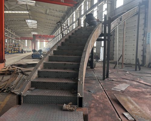 总之,钢结构楼梯因其优势,如承重能力强、形式多样、施工周期短等,被广泛应用于各种场景。其制作过程需要经过精密的设计和加工,以确保其质量和安全性。