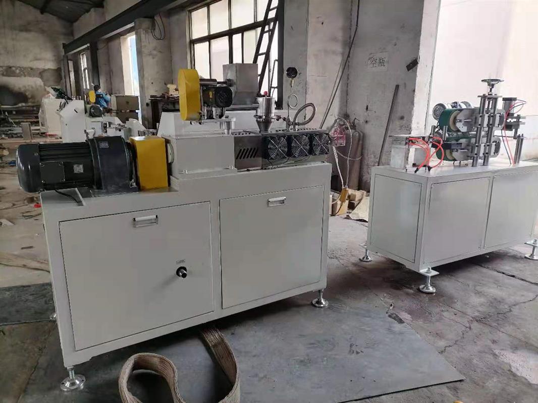 二、机组组成部分:单螺杆混炼挤出机主机→冷却水槽→吹干机→切粒机