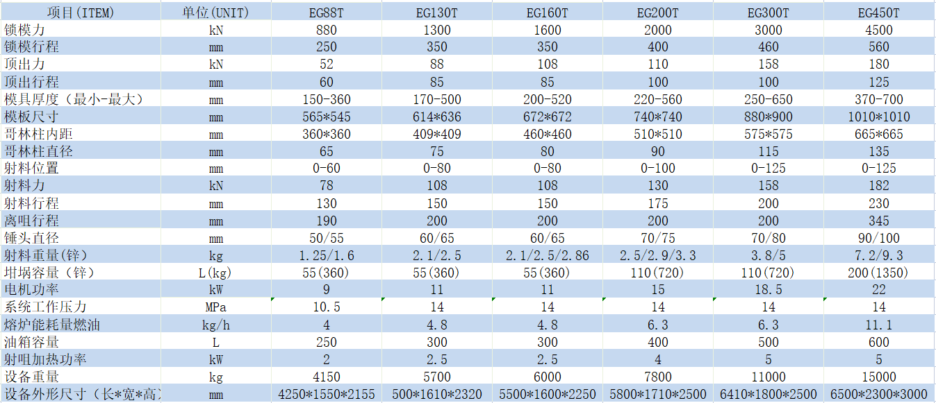 热室压铸机;产品机型包括88T-450T,通过20多年的不断改良优化,益格的压铸机采用优质的液压元件,配有专业的工业电脑,具有速度快、生产周期短、操作方便、性能稳定、安全可靠等优点,并通过了国家铸造锻压机械质量监督检测中心认证。