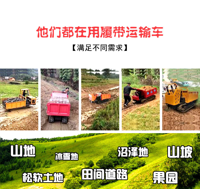 4.应用广泛,农林果园、水利建设、基建、矿山运输、货场装载等场所;适用于各种复杂地形的运输:山地、沼泽、河滩、沙漠、水田、雪地、冰面等。