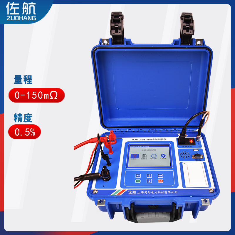 佐航 DLQ2111PK 回路电阻测试仪采用 100A 恒流输出,最高输出电压达 8V(为常规仪器的 2~4 倍),可采用截面较细的测试线,减轻了现场测试人员的劳动强度。本产品主要应用于开关触点的接触电阻和其它微欧电阻的测量,测试速度快、准确度高。