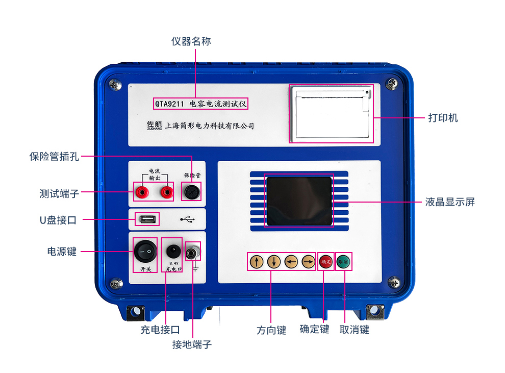 佐航QTA9211电容电流测试仪。采用全新硬件结构和速度更快的ARM处理器及AD转换器,内置全新的全数字变频逆变电源,效率高、发热量小、体积小、重量轻。与前一代相比,新一代体积和重量都大大减小,使用锂电池供电,更加便于携带和现场测试。加入新的测量方法,以解决4PT连接方式电网电容电流测试精度不高的问题。在任何时刻(包括测量过程中)都可准确测量零序3U0电压,从而便于用户判断系统工作状态;并且在测试过程中,如果零序3U0电压过高可自动停止测量过程。该测试仪采用工业彩色液晶屏(强光下可读)、中文菜单、人机交互更加友好,并且具备U盘存储和数据打印等功能。接线简单、测试速度快、测试稳定性和数据准确性高,大大减轻了试验人员的劳动强度,提高了工作效率。