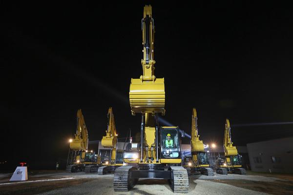 最吸引眼球的还属“进化”板块,搭载Cat智能解决方案的设备在遮挡操作手视线的情况下闪亮登场,挖掘机在坡度控制系统导引下穿过黑夜抵达指定地点,充分展现了智能化升级后Cat挖掘机出色的操控精确度,为重视施工效率与安全的用户提供了借鉴。之后,卡特彼勒主要领导与搭载了Cat智能化系统的Cat 320D2挖掘机进行“人机互动”——共同开启了Cat“‘效’纪元年”,把盛典推向高潮。