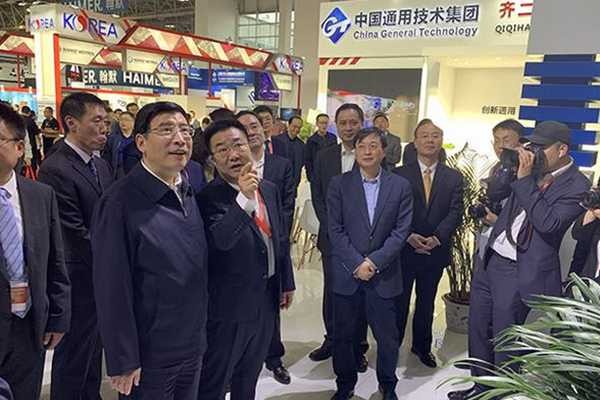 4月15日,第十六届中国国际机床展览会(CIMT2019)在北京中国国际展览中心隆重开幕。中国通用技术集团齐二机床公司携自主研发的高端数控机床FA-130型数控高速落地铣镗床及CZK5116?10/8数控车钻复合机床在展会盛装亮相,凭借其先进的性能、华丽的外观受到国内外用户的广泛关注。展会期间,国家工信部部长苗圩,集团董事长许宪平,集团总经理陆益民,集团副总经理、总会计师李晓春,集团副总经理王旭升,原中国机床工具工业协会会长吴柏林莅临齐二机床公司展位视察。