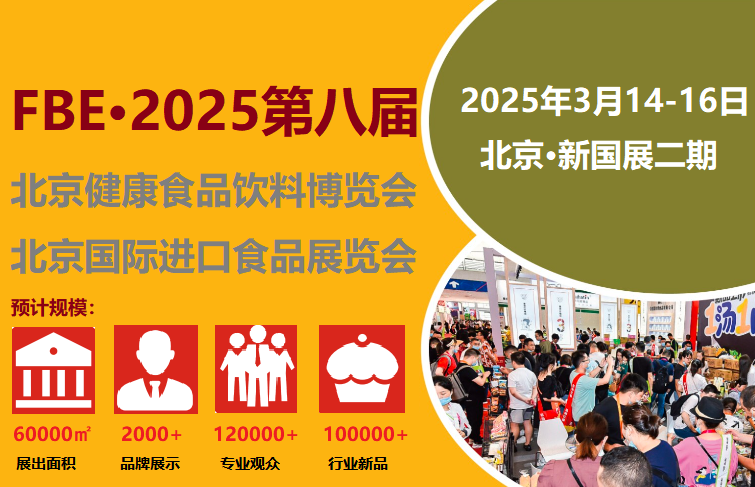 开年首展,抢占客户!作为北京食品饮品行业最具知名度与影响力的年度盛会之一,2025中国健康食品饮料(北京)博览会暨中国(北京)家庭餐饮便利食品展览会,正式定档,将于2025年3月14-16日在北京?新国展二期与2025第八届北京餐饮采购展览会同期举办!